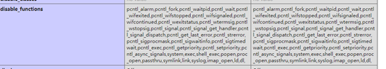 但是发现蚁剑终端并不能用,回到phpinfo()发现很多方法被禁用。