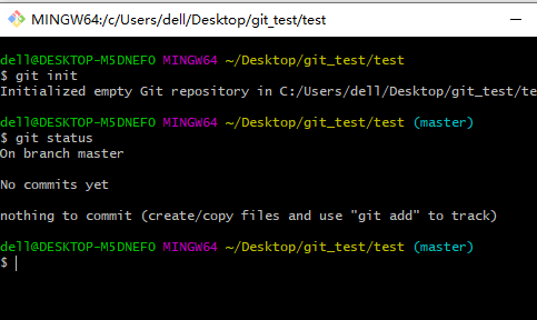 2. 查看当前工作区(workspace)状态(工作目录为空,暂时还没有文件可以提交):