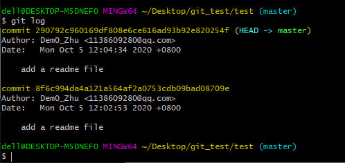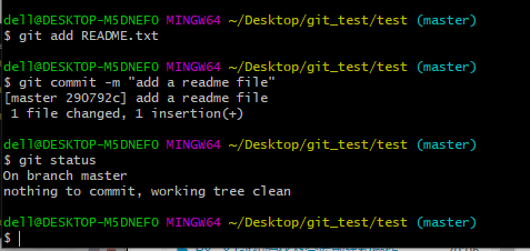 1 1 git commit -m "wrote a commit log info” # 把暂存区里的文件提交到仓库 -m后为本次提交的说明