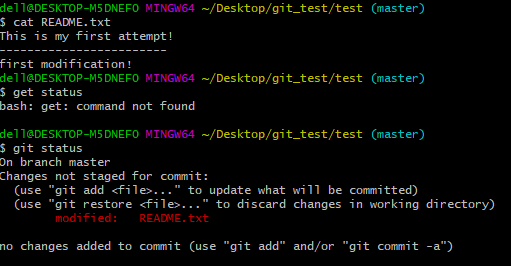 - 本地文件修改后,可以通过git status查看修改的文件,然后使用git add添加修改的文件到暂存区。