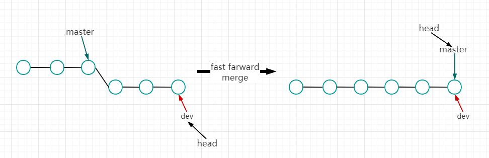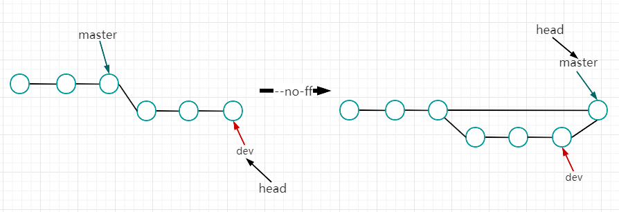 1 git checkout master # 切换到主分支 2 git merge dev #通过快进式合并 3 git merge --no-ff dev