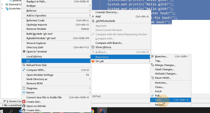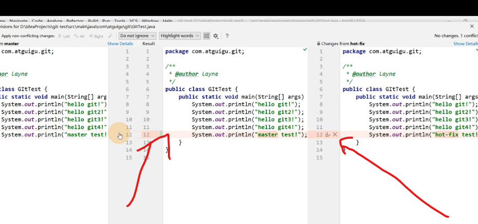 git commit -m " merge test " !!!这里的提交到本地库不可以加文件名!!!