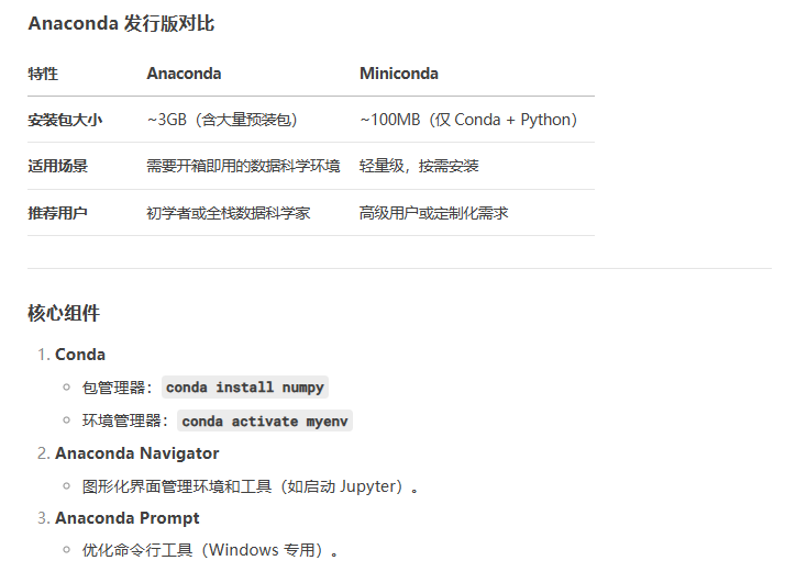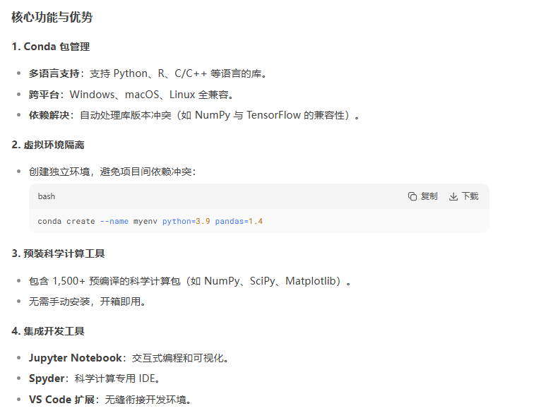 Conda:管理二进制包(含非 python 依赖),支持环境隔离。