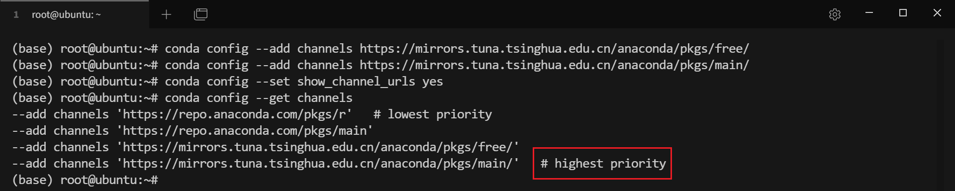 - conda config --remove-key channels # 删除添加的所有镜像源,恢复默认