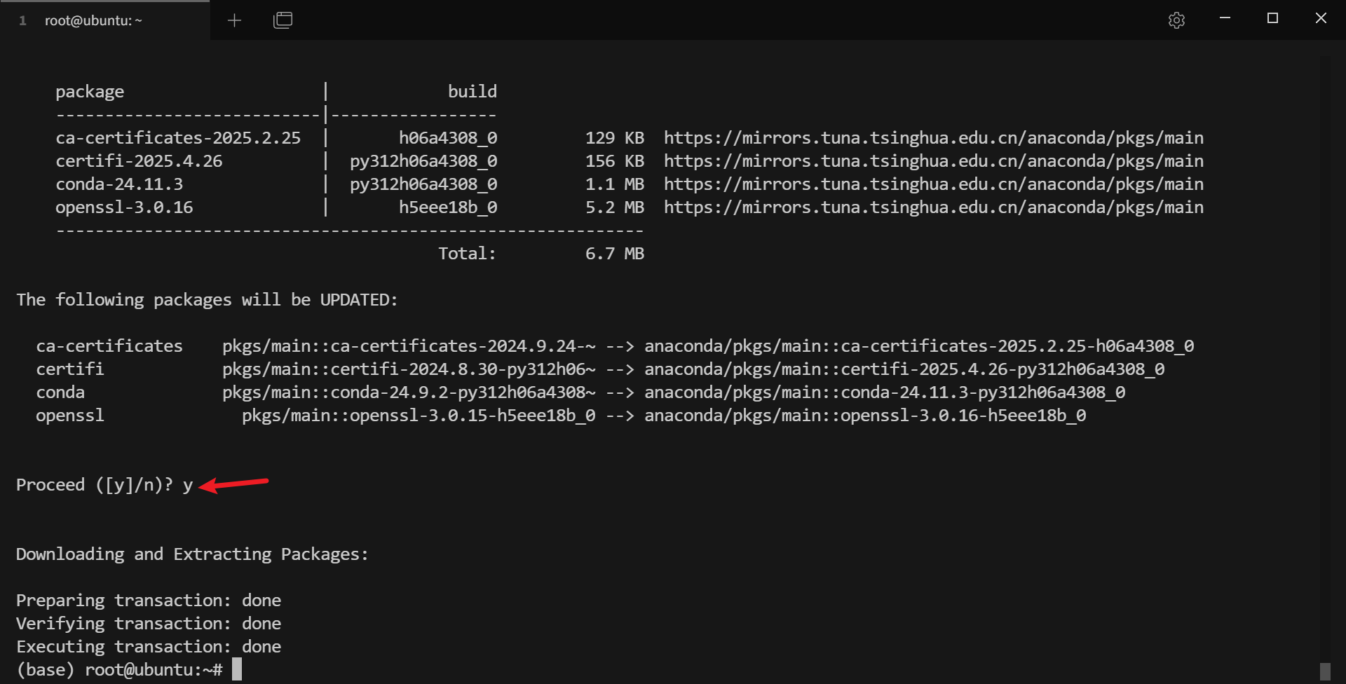 - conda install numpy pandas matplotlib -y # 非交互式安装多个包