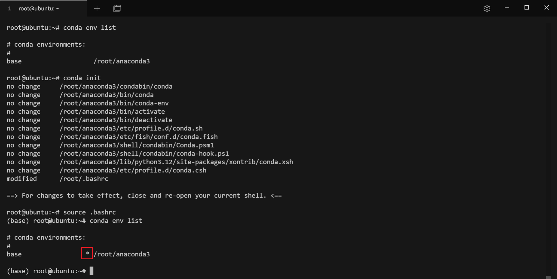 # 初始化 Anaconda(星号表示当前所处的虚拟环境)