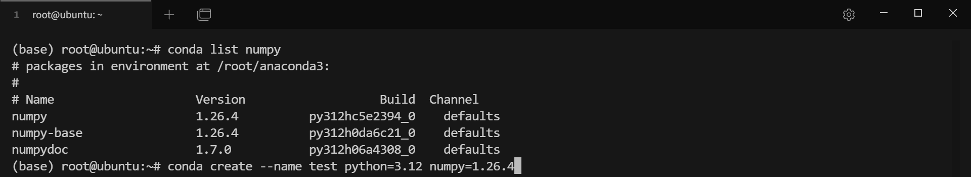 # 创建一个 test 虚拟环境并指定环境的 python 和 numpy 版本