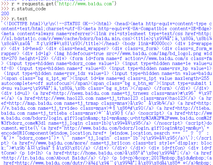 status_code HTTP请求的返回状态,整数200表示连接成功,404表示失败