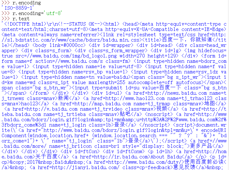 它给出了返回页面内容的编码方式,可以通过对encoding属性值更改编码方式,以便于处理中文字符。content属性是页面内容的二进制形式。