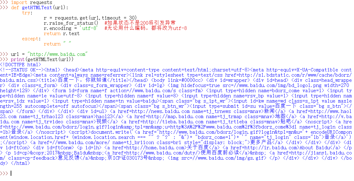 get(url[,timeout=n]) 对应于HTTP的GET方式,获取网页最常用的方法,可以增加timeout=n参数,设定每次请求超时时间为n秒