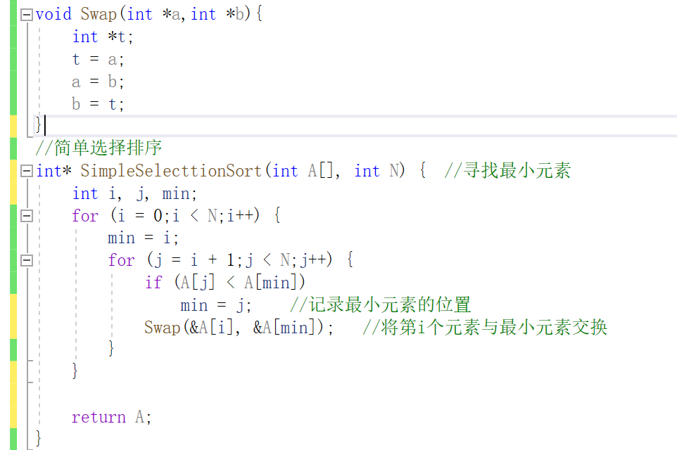 如下是一个例子,当min==i时,不用交换;那么简单选择排序移动元素的次数为零,在最坏的情况下为3(N-1)次,