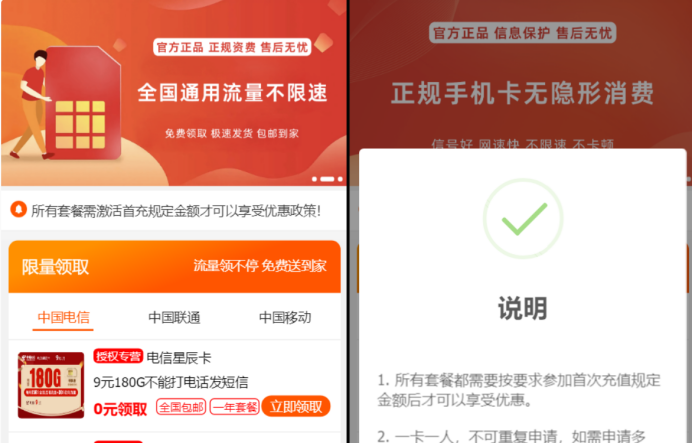 一款号卡推广单页源码,自己仿来的,比较简洁,带弹窗公告,有在做号卡代理推广的可以拿去用哈。