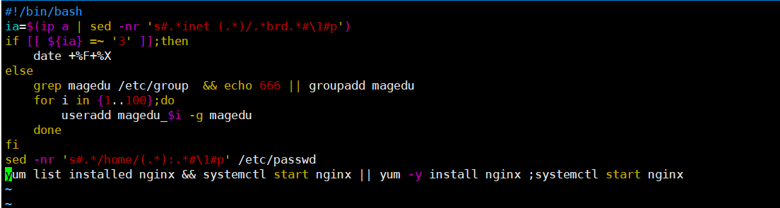 3. 如果ip地址中不含3这个数字,就批量建立用户magedu_00, magedu_01, ... magedu_100并且所有用户同属于magedu组