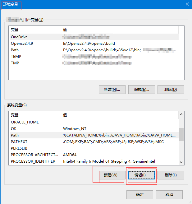 然后就进入了“环境变量”这个窗口,在系统变量那个框里面,通过点击“新建”按钮增加“JAVA_HOME”和“classpath”,点击“编辑”按钮对“Path”添加变量值。