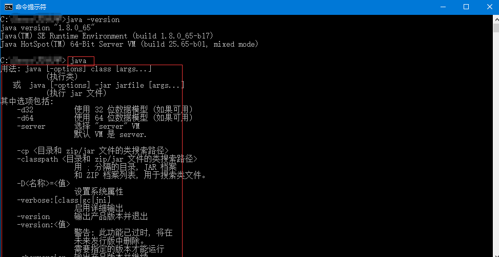 接下来,我们就可以打开命令行,查看JDK是否已安装配置好环境