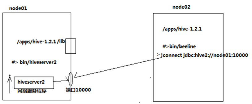 hive/bin/beeline 回车,进入beeline的命令界面,输入命令连接hiveserver2:beeline> !connect jdbc:hive2://itcast01:10000