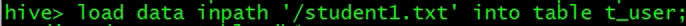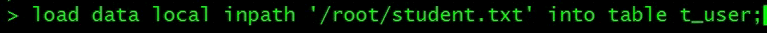 load data local inpath '/root/lianggang.txt' into table t_lianggang; |