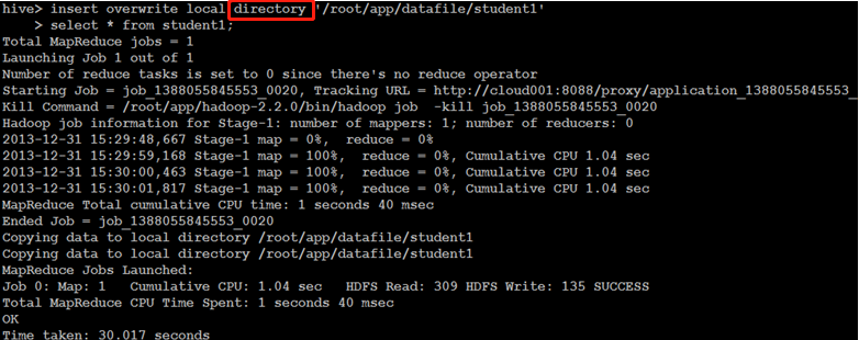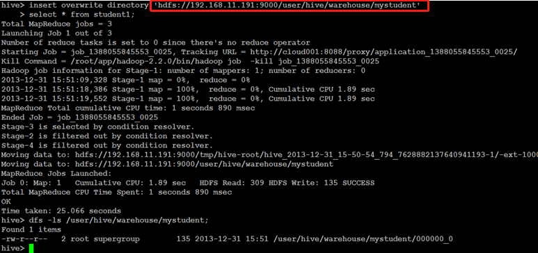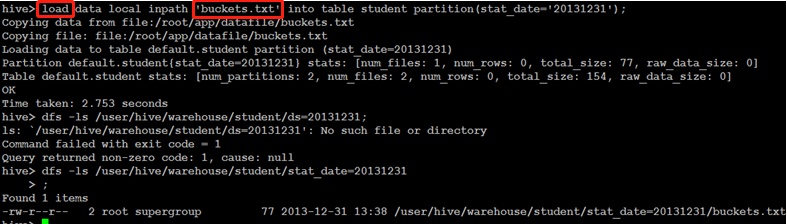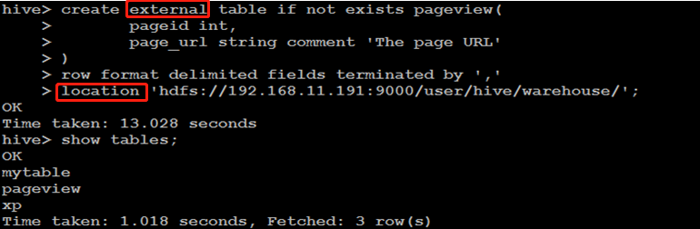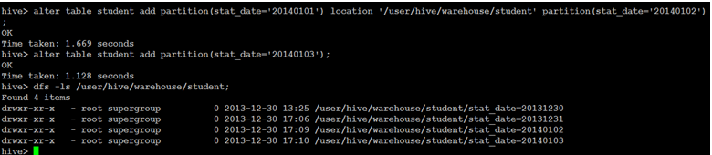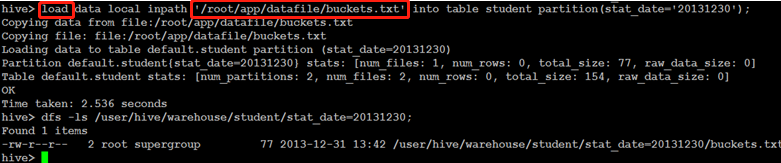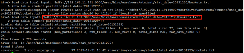 如果路径不是绝对的,Hive 相对于/user/进行解释。