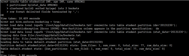 3、Hive 中包含以下数据模型:DB、Table,External Table,Partition,Bucket。