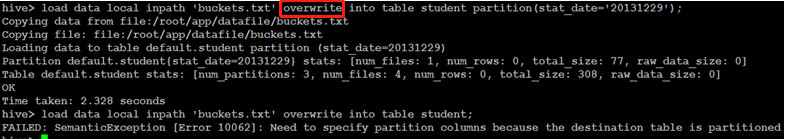 load 命令会将 filepath中的文件复制到目标文件系统中。目标文件系统由表的位置属性决定。被复制的数据文件移动到表的数据对应的位置。