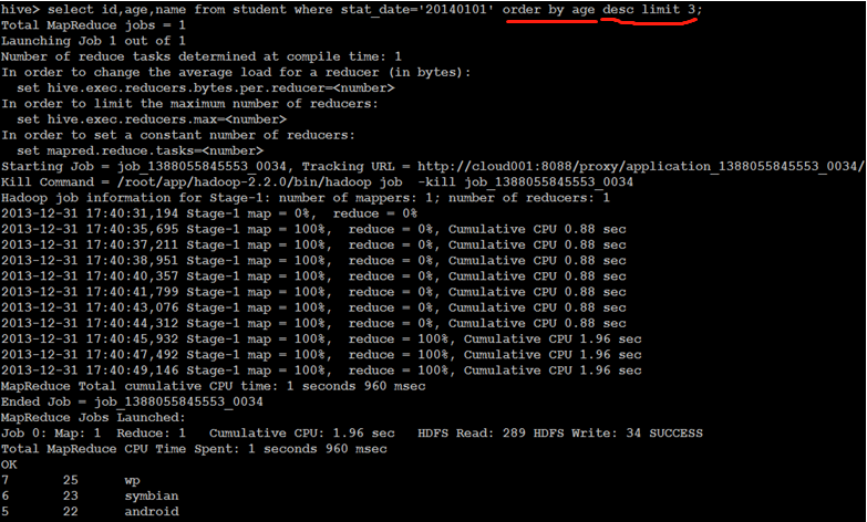 create table t_refer_host_visit_top_tmp as select referer_host,count(*) as counts,mm,dd,hh from t_display_referer_counts group by hh,dd,mm,referer_host order by hh asc,dd asc,mm asc,counts desc;