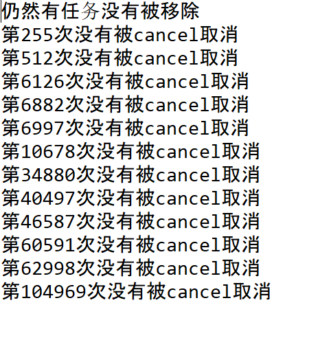 System.out.println("仍然有任务没有被移除");