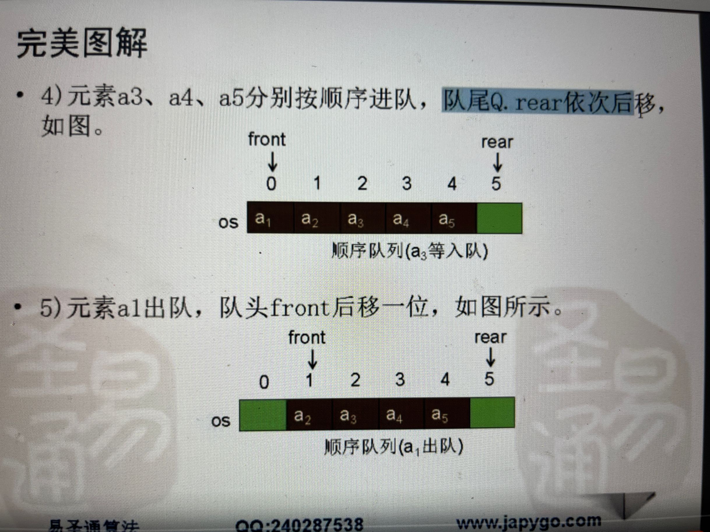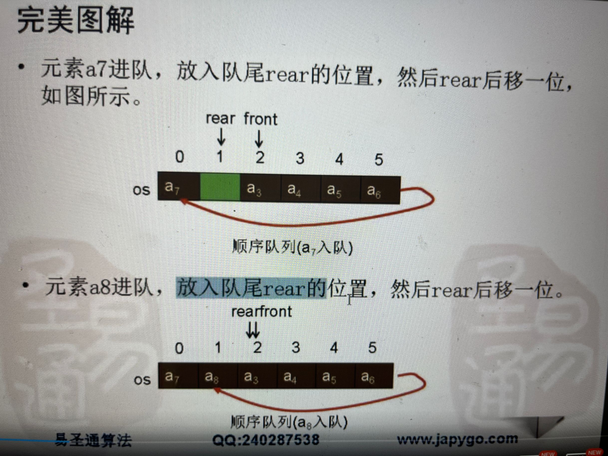 解决方法:浪费一个空间 当队尾rear的下一个位置front 时就认为是队满