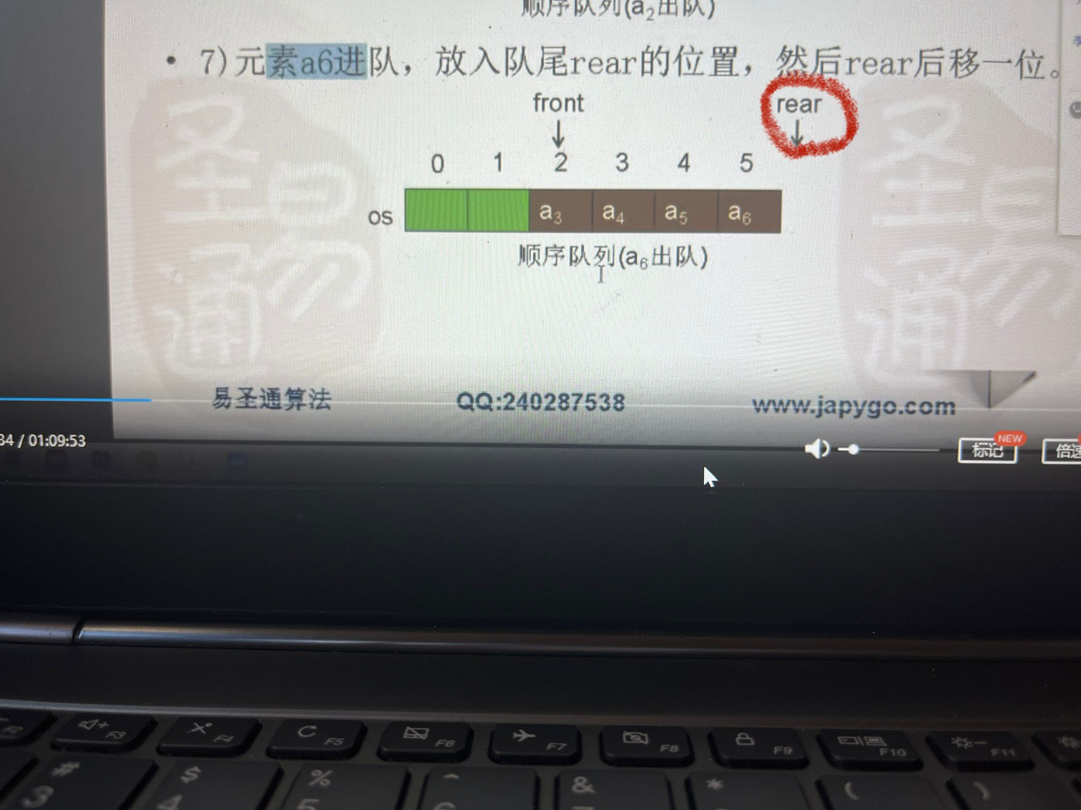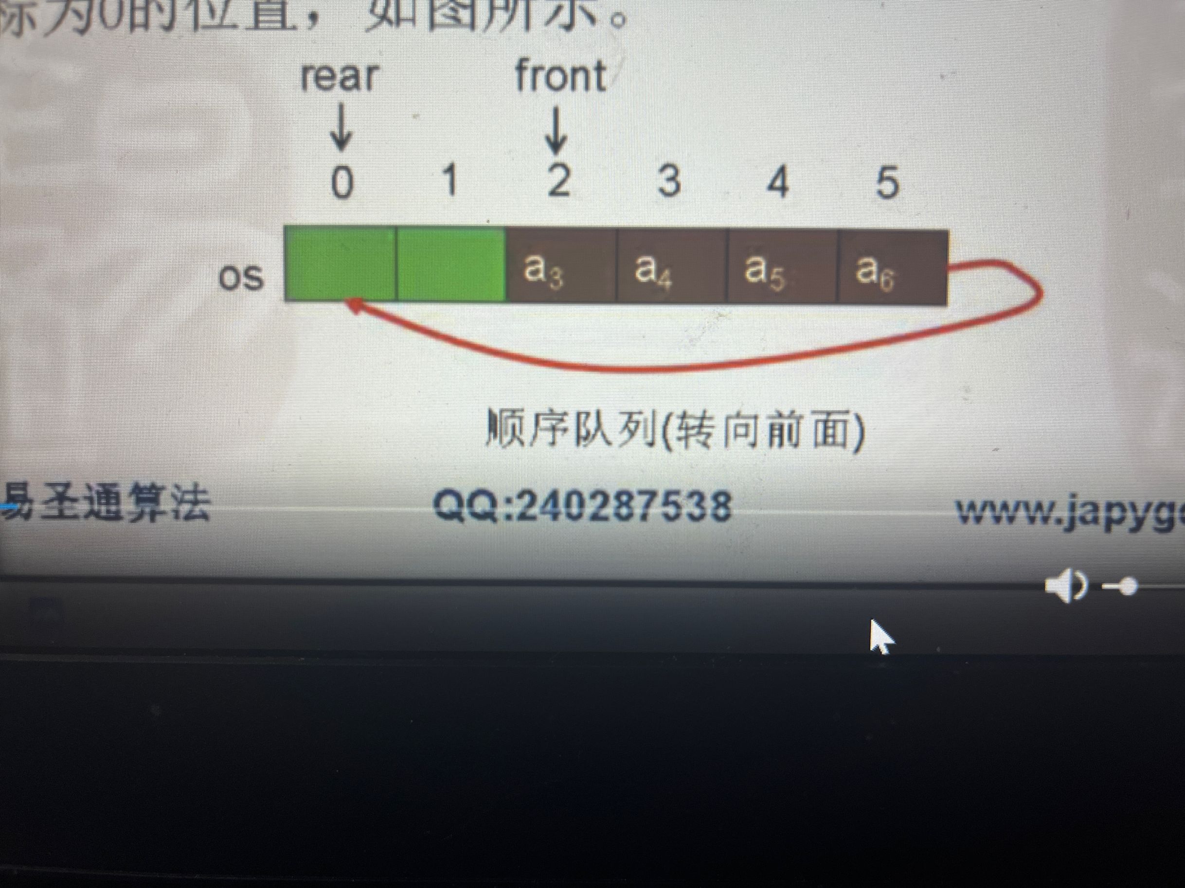 思路:数组是从0开始的 rear+1=Maxsize刚好越界 所以要转向前面下标为0的位置