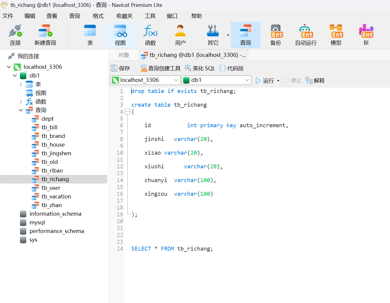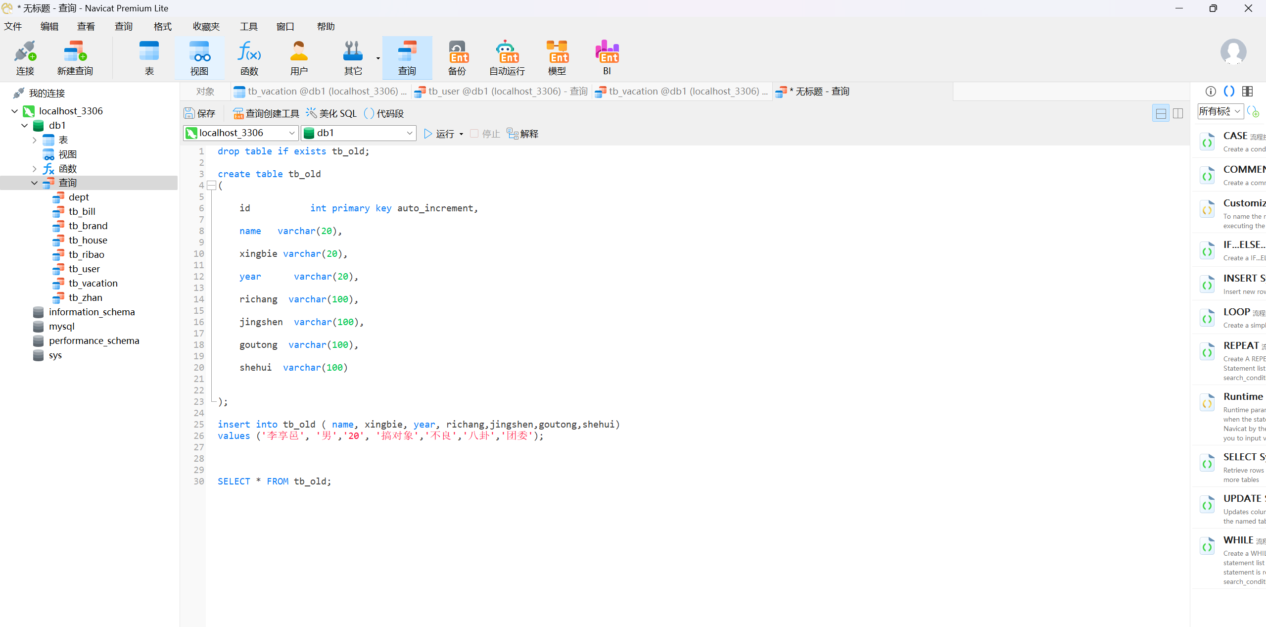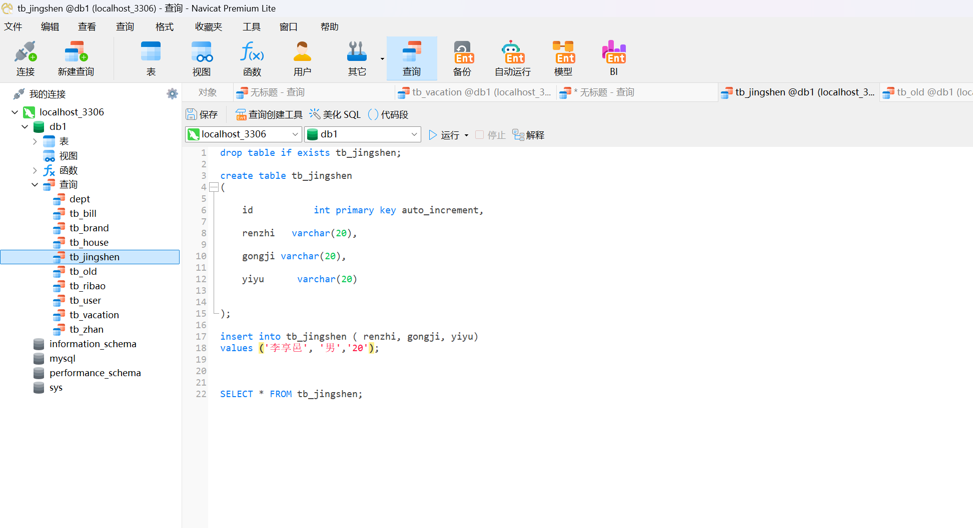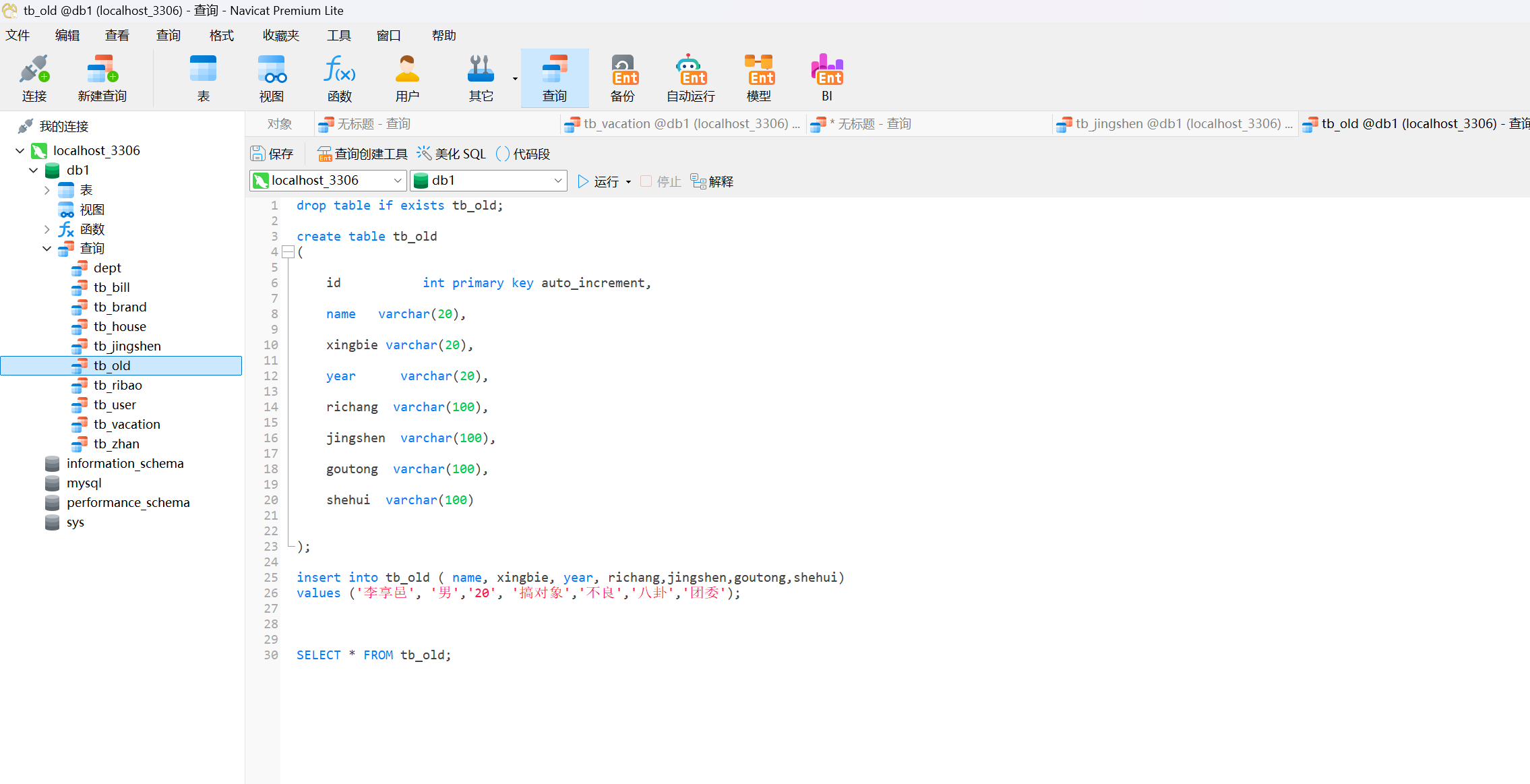在数据库中建立一份老年人信息登记表