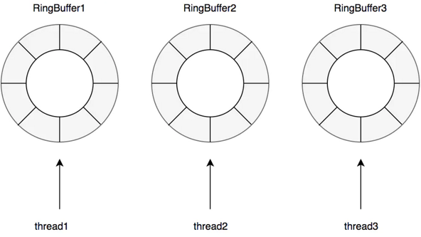 2.读操作比写操作更加频繁,进一步减少竞争,其为每个线程配备了一个RingBuffer.