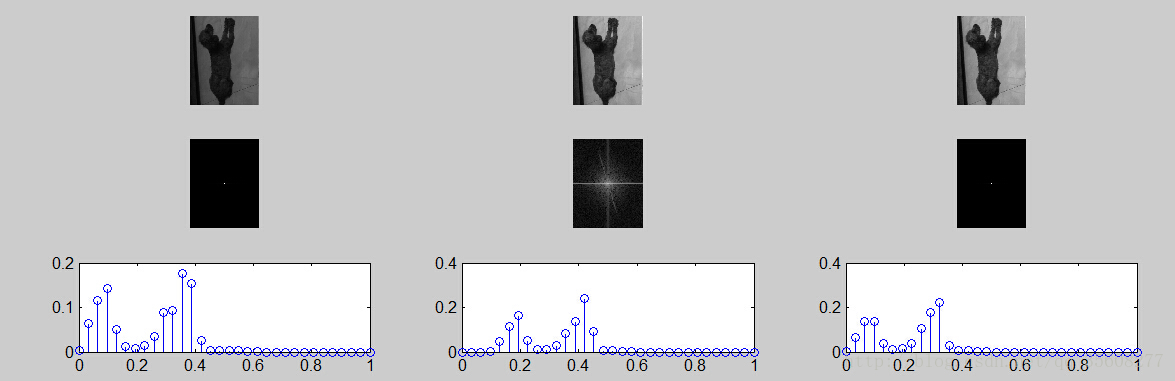 2.第二列傅里叶变换的频谱图是对原图傅里叶频谱图的对数变换,可以看到,经过对数变换,能够显示更多的图像信息。