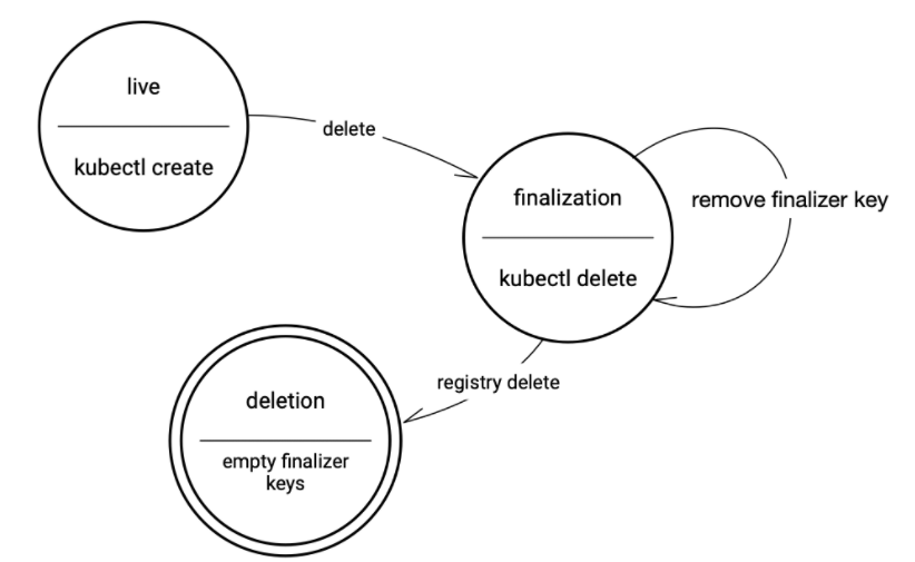 There's one situation that may require forcing finalization for a namespace. If you've deleted a namespace and you've cleaned out all of the objects under it, but the namespace still exists, deletion can be forced by updating the namespace subresource, finalize. This informs the namespace controller that it needs to remove the finalizer from the namespace and perform any cleanup: