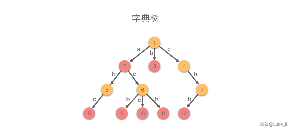 - 每次从根结点出发,根据当前字母是什么,走向对应的边。