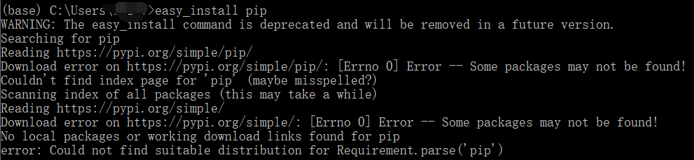 想下载Pillow包,用pip install Pillow命令,找不到对应的包,于是想到更新pip,结果把pip给更新没了,如图