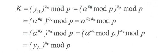 Alice通过计算: K = (yB)^aA mod P生成秘钥K