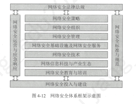 网络安全体系包括法律法规政策文件、安全策略、组织管理、技术措施、标准规范、安全建设与运营、人员队伍、教育培训、产业生态、安全投入等多种要素