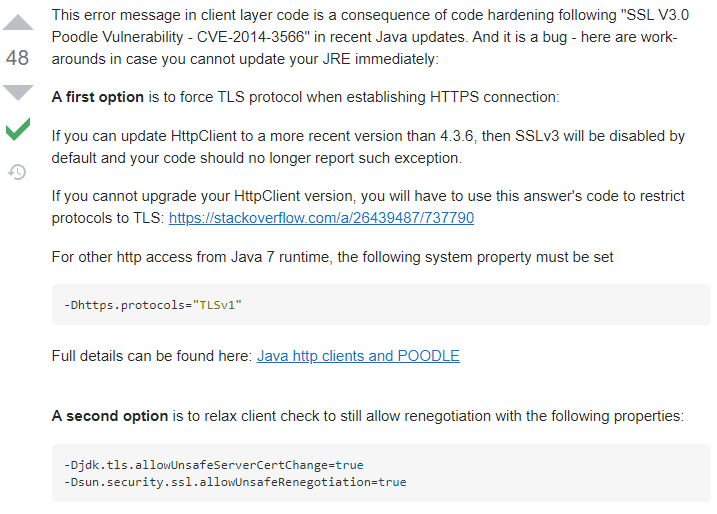 我这里参考的方案1解决的,在建立HTTPS连接时强制使用TLS协议,问题解决。
