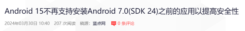 Android15可能是一个非常好的推动最低版本升级的好机会
