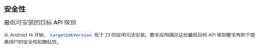 比如Android14的时候会明确说 targentSdkVersion不能小于23