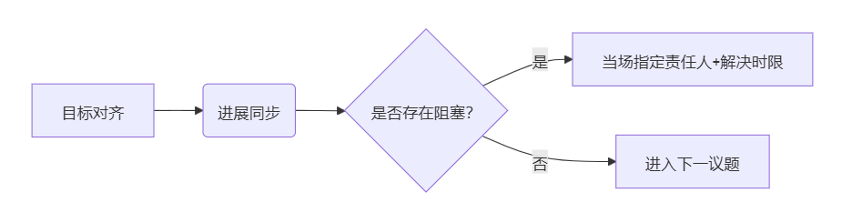 但在晨会就有些不太合适了,因为晨会是用来对齐目标发现卡点的,而不是汇报工作的。