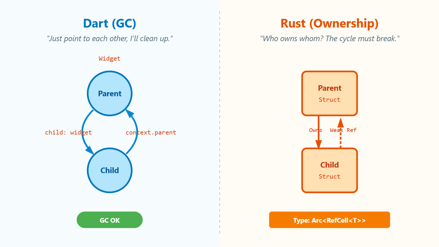 也正因为这个原因,UI 场景几乎是 Rust 所有权模型最拧巴的领域之一: