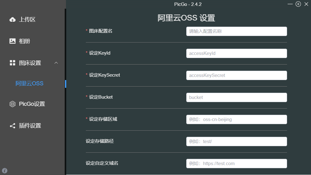 - 打开 PicGo -> 图床设置 -> 阿里云 OSS。
