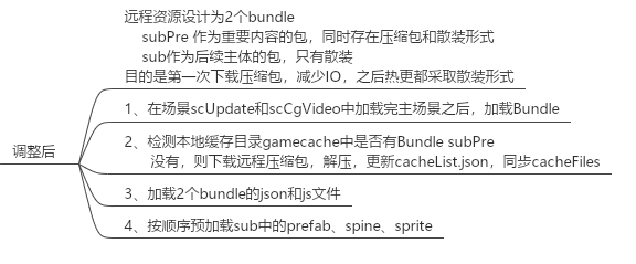 首先资源的下载,之前已经分成了2个远程Bundle,subPre是希望玩家在进入主场景之前下载完的,sub则是玩家按需加载。