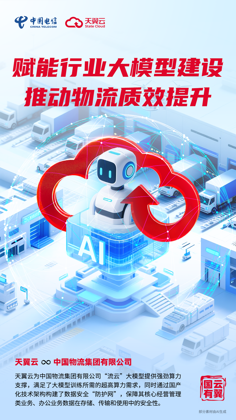 中国物流集团有限公司(以下简称“中国物流”)是国务院国资委直接监管的股权多元化国有全资中央企业,致力于打造“成为具有全球竞争力的世界一流综合性现代物流企业集团”。作为物流行业的“国家队”,中国物流积极把握人工智能发展方向,与中国电信等合作伙伴共同研发、上线2780亿参数“流云”大模型,有力推动了物流行业数智化升级与“人工智能+”生态发展,为降低全社会物流成本提供了强有力的技术支撑。天翼云作为云服务国家队,为“流云”大模型提供了强劲算力支撑,不仅助力中国物流成功实现数字化转型,也为整个物流行业智能化发展树立了央企新标杆。