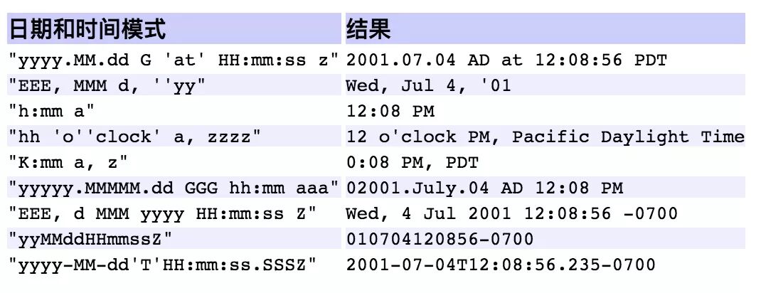 日期和时间模式表达方法