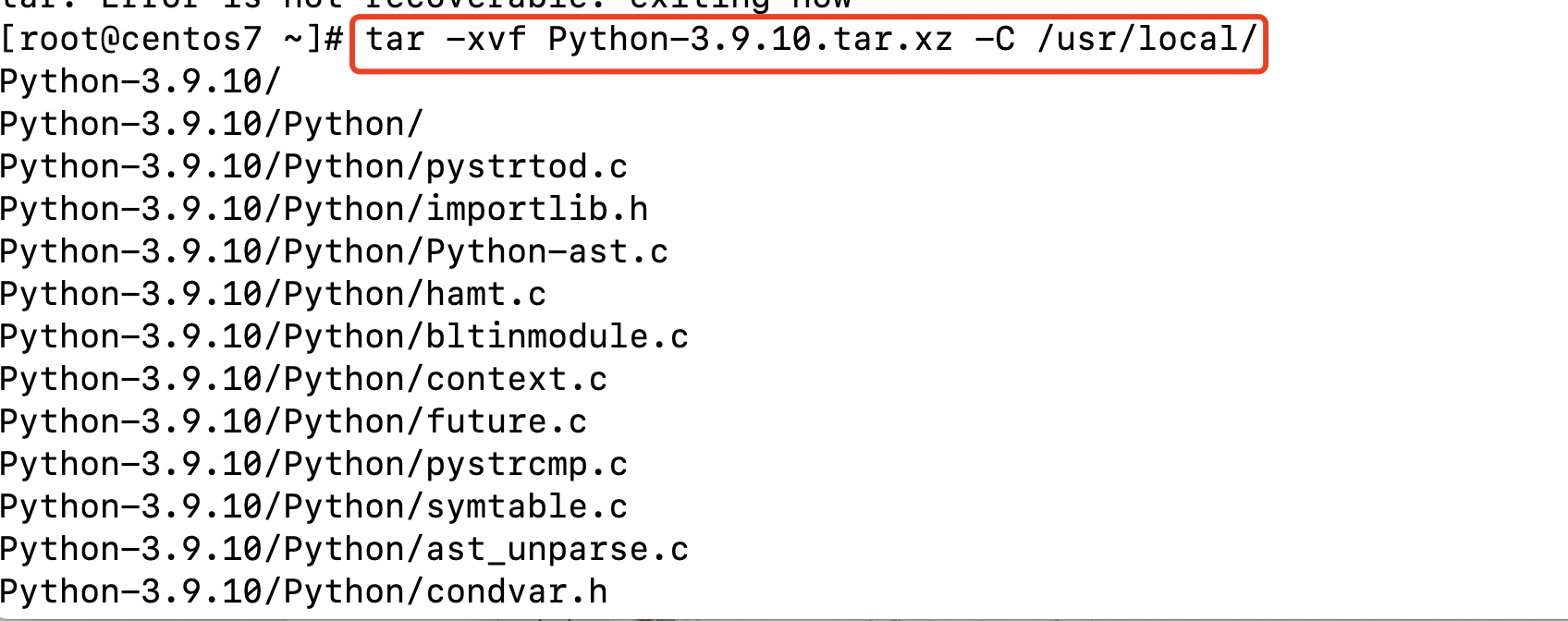 tar -xvf Python-3.9.10.tar.xz -C /usr/local/