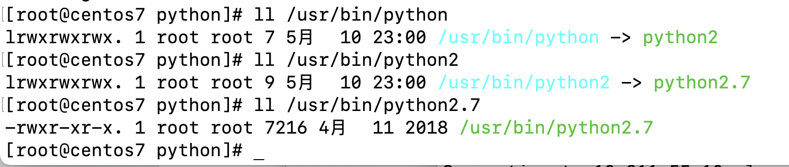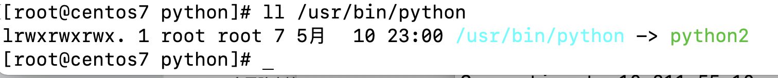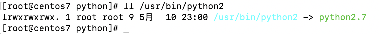 可以发现这个文件是一个软连接文件,源文件是相同路径下的python2文件