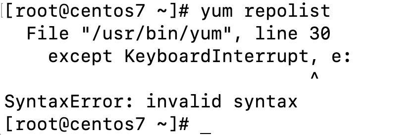 将默认python环境升级后,我们如果使用yum命令就会发现,yum无法正常使用了,报错如下: