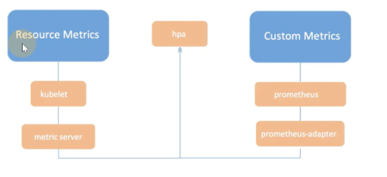 如上图,Resource Metrics 对应的接口是metrics.k8s.io,主要的实现就是 metrics-server,它提供资源监控能力,比较常见的是节点级别,pod级别,namespace级别,class级别,这类的监控指标都可以通过 metrics.k8s.io 接口获取。