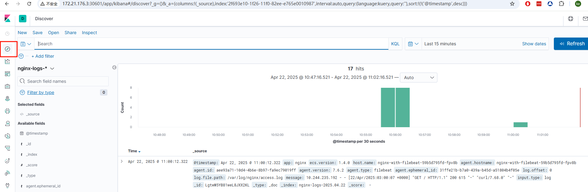 获取nginx的IP,通过curl请求模拟一次访问,创建一条日志
